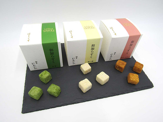 3種類の和のフレーバーを揃え、パッケージには、「ほーくす」の文字が書かれています。