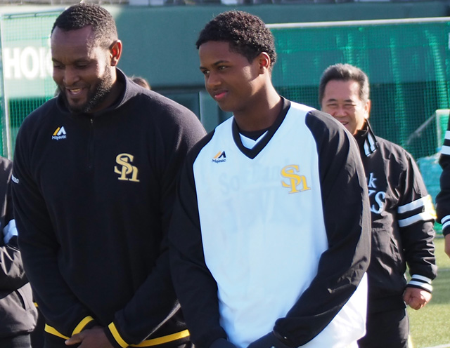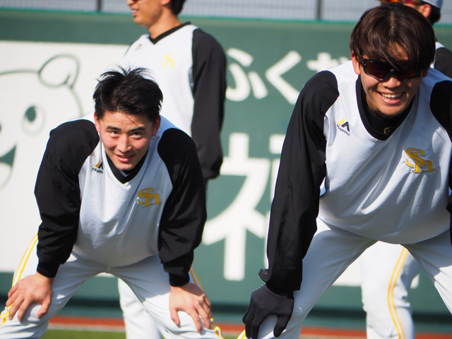 2月7日(水)の声出しはマルコ・シモン選手とダリオ・サルディ投手。若き外国人選手たちの声出しが終わった後、斉藤和巳4軍監督から無茶ぶりが飛びました。