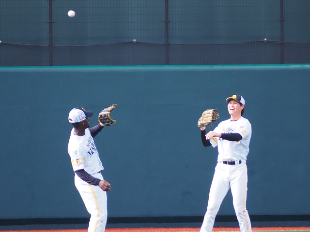 シモン選手が、守備や走塁練習から元気いっぱいにプレーする姿が目立ちました。野球が大好きなのがすごく伝わってきます。