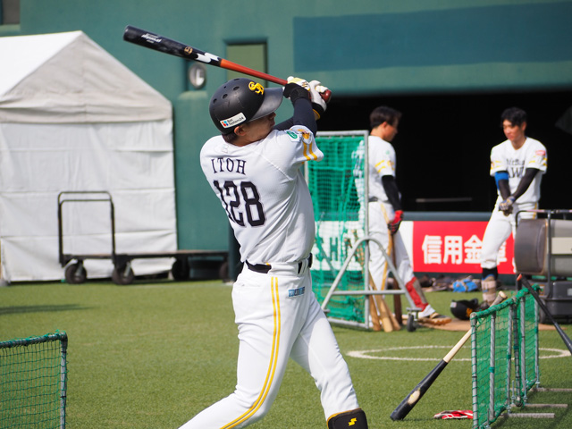 守備の安定感はもちろんのこと、「打撃の力強さが増したのではないか」と。打撃投手をしながら伊藤選手のパワーアップを感じたそうです。多くは語らずとも、いつも黙々と汗を流す伊藤選手。現在はC組にいますが、その努力が報われる日が来ますように。