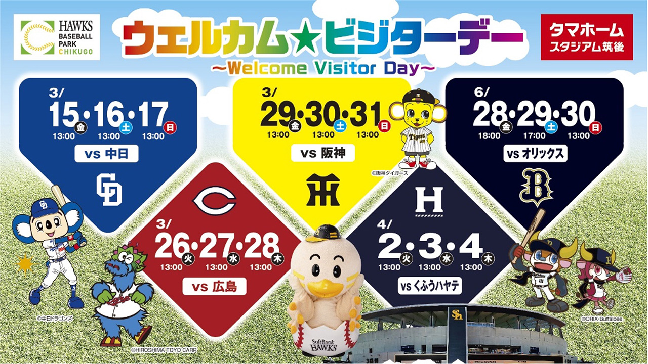 昨年、千葉ロッテファンの皆さまと大盛りあがりで幕を下ろした「ウェルカム☆ビジターデー」を、2024シーズンはウエスタン・リーグ所属の5球団と開催させていただきます!