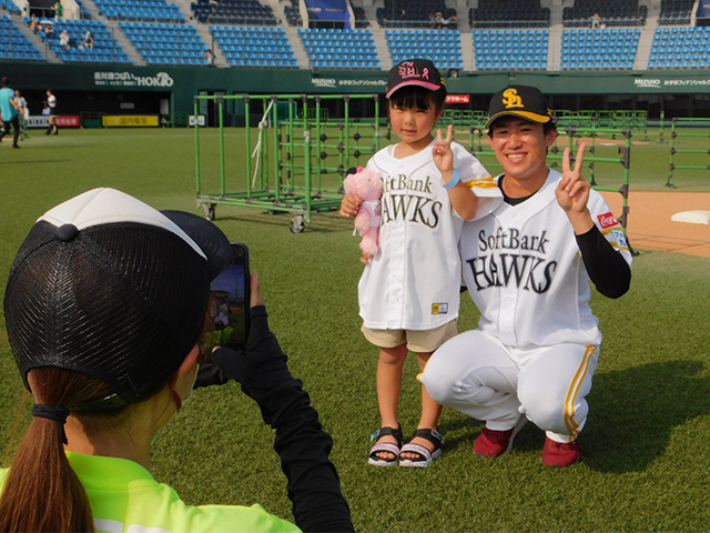 ホークス選手による「サイン会」や「選手と写真撮影会」などは、土日祝日を中心とする開催日に従って「ホークス筑後ファンクラブ会員」を対象に抽選で実施いたします。
