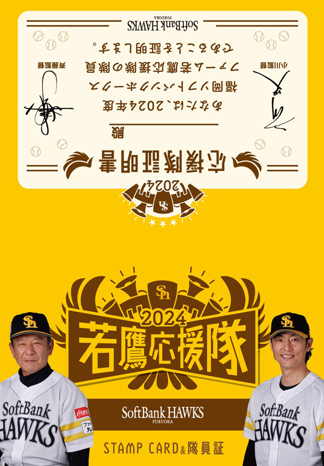 この度、3軍・4軍限定の若鷹応援隊を結成することになりました!隊長は、小川史3軍監督と斉藤和巳4軍監督が務め、隊員はファンの皆さまです!!3月20日(水・祝)の4軍戦は入場無料となり、試合終了後には決起集会を行います。2024シーズンの3軍戦・4軍戦に来場して、若鷹選手を応援しよう!