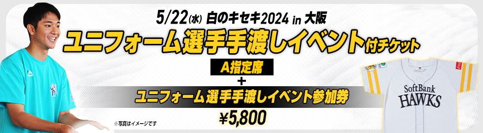 5月11日(土)に宮崎で開催するファイト!九州デーと、5月22日(水)に京セラドーム大阪で開催する白のキセキ2024のチケットを、クラブホークス会員・タカポイント会員対象にホークス公式チケット購入サイト「タカチケット」にて先行先着順販売開始!