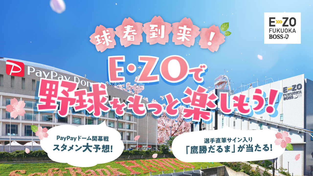 待ちに待った球春到来♪3月よりオープン戦がスタート!PayPayドーム横の「BOSS E・ZO FUKUOKA」でもサイン入り鷹だるまが当たる抽選会や、誰でも参加できるスタメン大予想など楽しい企画が盛りだくさん♪さらに、この春から外周デッキの一部の植栽が季節を感じられるガーデンに生まれ変わりました!試合観戦の前後はE・ZOでもっと野球を楽しもう!