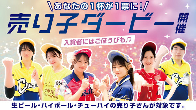 売り子さんたちはお互いが仲間でもありライバル!「VIVA売り子Night」限定で各試合日ごとにアサヒビール、キリンビール、ハイボール、チューハイ・サワーの販売数を競う「売り子ダービー」を開催いたします!