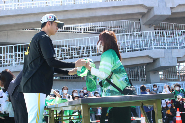 毎年好評のワッペン圧着済ユニフォームへの交換が、事前予約券(有料)でユニフォーム配布列に並ばずにご購入いただけます!今年は事前予約が可能となり、当日のワッペン圧着済ユニフォームの売り切れの心配なし!観戦当日ご来場の際に、好きな時間にお受け取りいただけます。