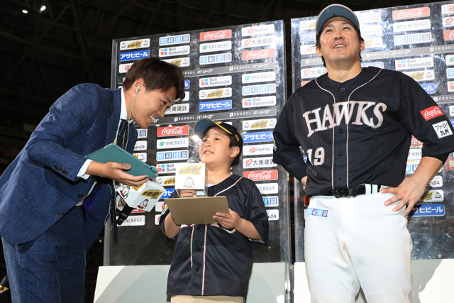 ホークス勝利時、ヒーロー選手にインタビューを行っていただきます。