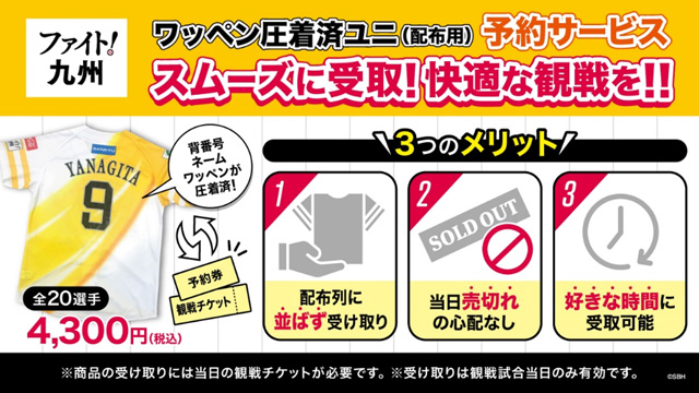 当日の観戦チケットをお持ちの入場者全員へ「ファイト!九州2024ユニフォーム」を配布します。