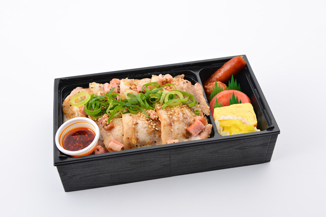 アグー豚の豚バラ肉をたっぷりのせたご飯にピリ辛ダレをかけて食べると食欲も倍増!!ボリューム満点のお弁当です!