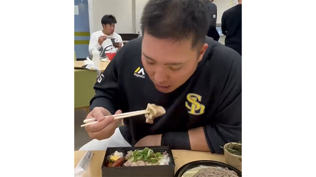 山川選手も実際に試食!!一口食べて「めちゃくちゃうまい!」の一言!好物の卵焼き入りで大満足いただきました♪