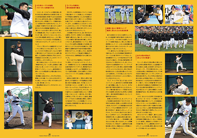 巻頭には2024シーズンのチームの展望を掲載。またPayPayドームの席種やホークス公式ファンクラブ・クラブホークスの情報など、最新情報を多数掲載しています。