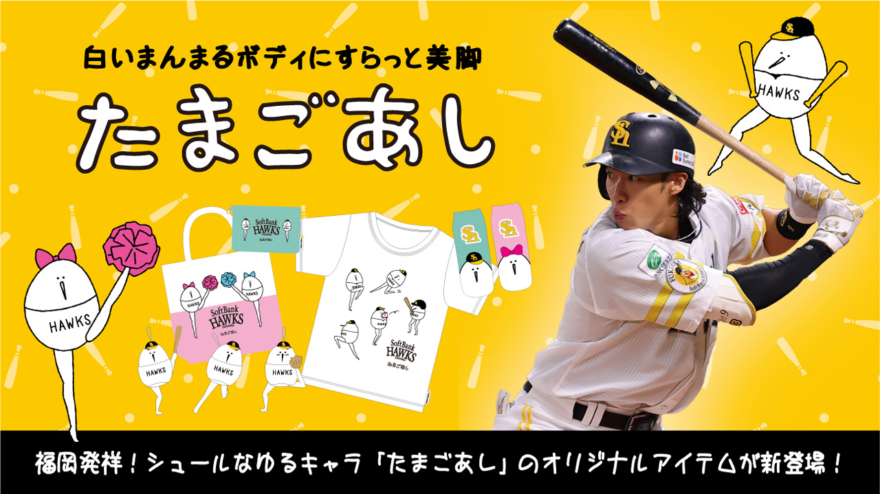 オフィシャルスポンサーであるグロリア株式会社の人気キャラクター「たまごあし」とホークスコラボバージョンのグッズが新登場!