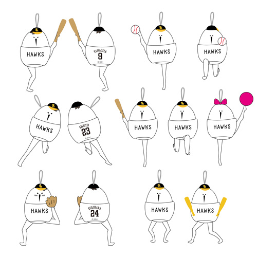 グロリア株式会社の人気キャラクター「たまごあし」のホークスコラボバージョンが勢ぞろい!
