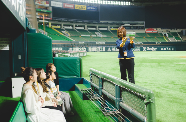 「練習見学コース」の座席はベンチサイドシート・3塁側へのご案内となります。見学の際は当社指定の座席へご着席ください。