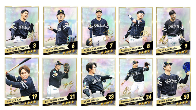 近藤選手、今宮選手、中村晃選手、牧原大成選手、柳田選手、甲斐選手、和田投手、周東選手、栗原選手、板東投手