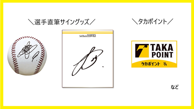 当選の方のみ必要ポイント数を事前に減算いたします。当日は当選品をホークスビジター応援ブースでお受け取りいただきます。