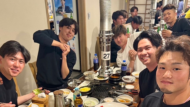 2週間に及ぶ韓国遠征に臨んだ3軍。休日前に開かれたチームの食事会の様子をたっぷりお届けします
