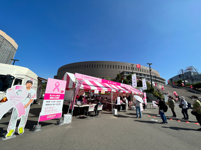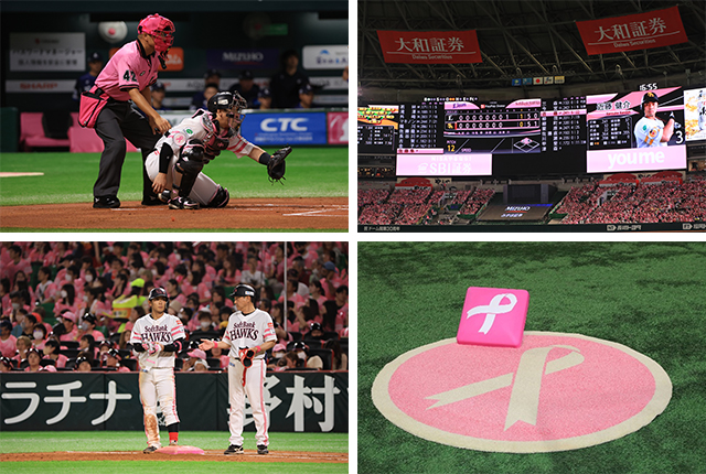 ホークスファンをはじめとする野球ファンをはじめ、ご来場の1人でも多くの方にピンクリボンについて考え、知っていただき、乳がん検診の定期的な受診や早期発見へのきっかけになる事を願って取り組んでいます。