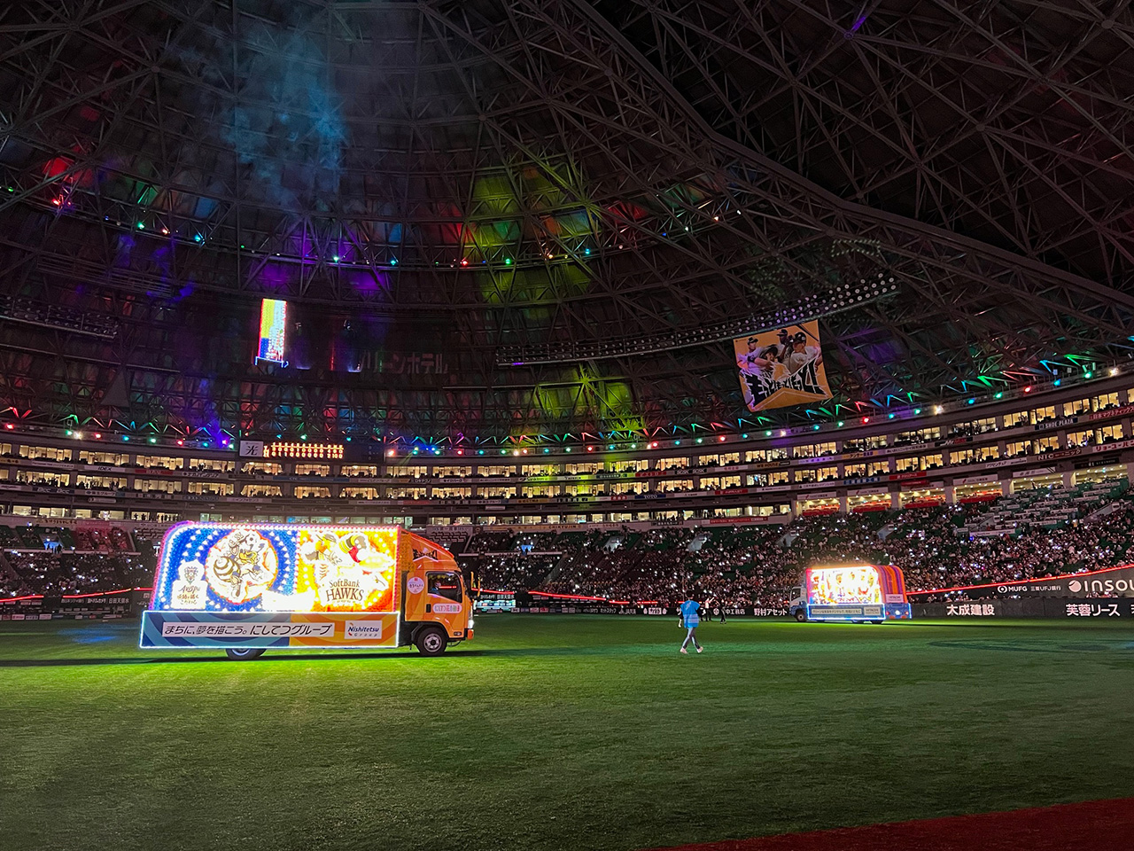 5月6日(月)の「にしてつDAY」開催に合わせ、みずほPayPayドーム福岡に「にしてつ花自動車」が3台登場いたします。ホークスが試合に勝ちますとドーム場内を暗転させてドーム内を花自動車が走行いたします。是非ご期待ください。※ホークスが負けた場合、球場内の暗転はございません