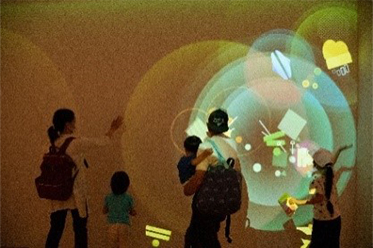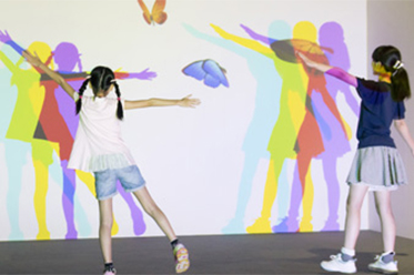 | 壁に手をかざすと音が鳴り、となりで手をかざしている人と一緒に合奏も楽しめます。 |