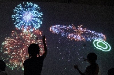 | みんなでボールを壁に向かって投げるとまるで花火のような音や映像が広がります。 |