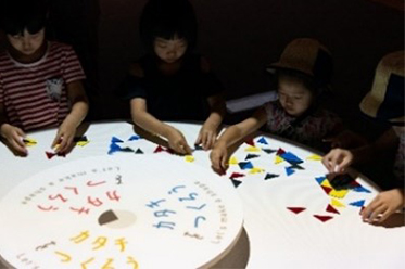 | テーブルをみんなで囲んで、歌に合わせてパーツを動かすと、ひとつのアニメーションが生まれます。 |