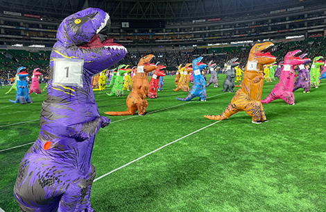 ホークス選手がプレーするグラウンドを疾走できる!「第13回トータル・メディカルサービスみずほPayPayドームリレーマラソン」を9月28日(土)に開催します!今年は『Run with FUN!思い出に残る挑戦』をテーマに、42.195kmリレーマラソンや20kmリレーマラソンの他、昨年大好評のティラノサウルスレースも実施します!さらに、ファミリーランのプラン内容をアップデート!家族や仲間を誘って楽しい1日を過ごそう!5月27日(月)からエントリーを開始いたします。