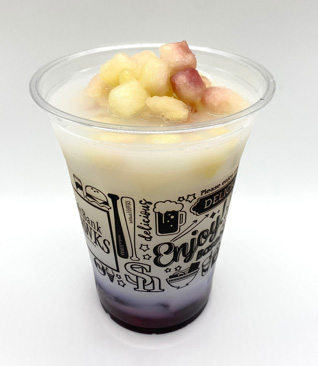雨のしずくに見立てたゼリーを配合し、この時期に美しく咲くすみれや藤棚・紫陽花を連想させる、きらり輝く幻想的な“紫色”に。白星をイメージしたホワイトピーチに乳酸菌飲料を加え、幅広い世代の方に愛されるテイストが完成しました。