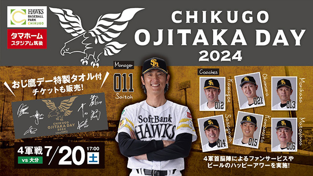 さらに!「4軍・筑後おじ鷹デー」も7月20日(土)の4軍戦(vs 大分B-リングス)での実施が決定しました!