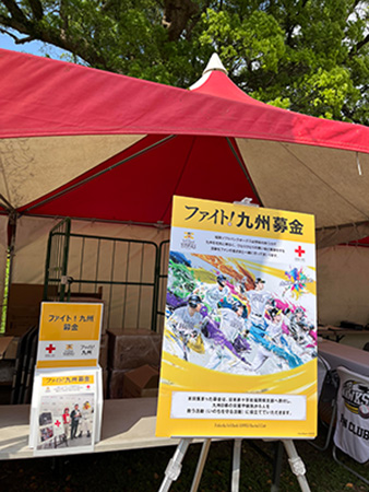 ファイト!九州デー当日に、各会場で、募金箱を設置します。集められた募金は日本赤十字社 福岡県支部を通じて九州各県の災害や病気から人を救う活動(いのちを守る活動)に役立てられます。