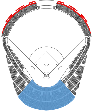 プレミアムシート・SS・S・上段指定席一部(図青エリア)