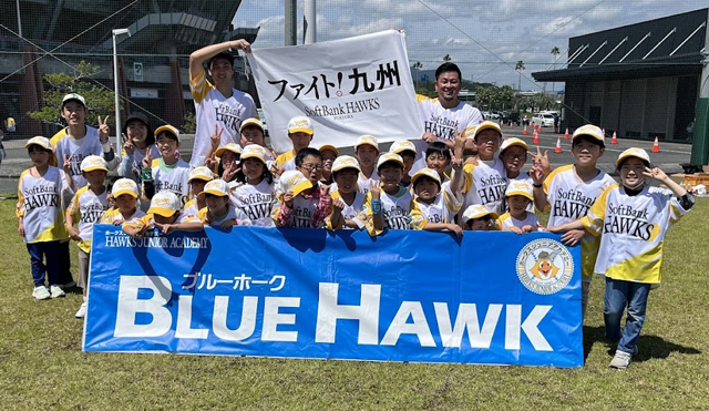 試合当日、ホークスジュニアアカデミーコーチによる、親子でご参加いただける野球教室「ブルーホーク」を開催いたします。ボールの握り方や投げ方、キャッチボールなどの簡単な動きを通じて野球や運動することの楽しさを体験することのできる野球教室です。