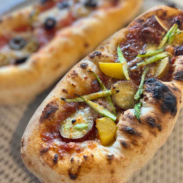 赤ワインでじっくり煮込み、肉の旨味の凝縮したボロネーゼソースと筑豊産の無農薬野菜を使った贅沢ナポリピッツァです。