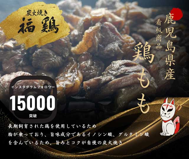 コクと旨みがつまった鹿児島県産の鶏肉を使用しており、炭にもこだわりジューシーに焼き上げます。