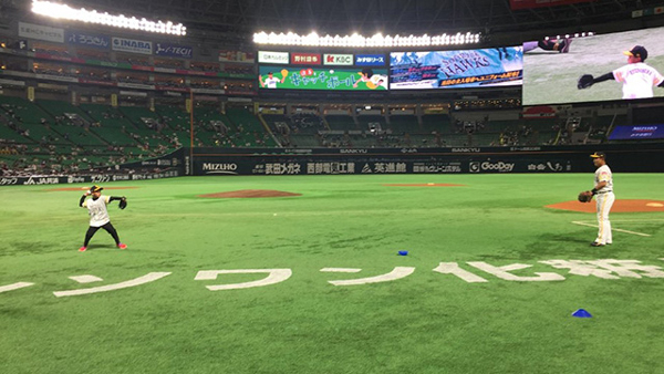 試合開始前の時間にグラウンドで選手の練習を間近で見学できます!