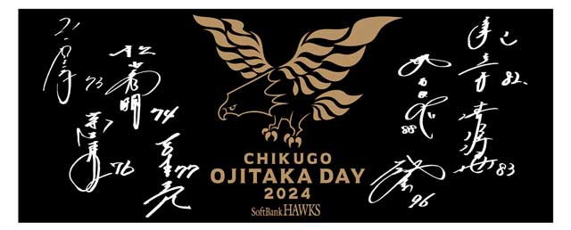8月試合を対象に2軍首脳陣サインと渋カッコいい鷹のイラストがプリントされた「おじ鷹デー特製タオル」と観戦チケットのセット券をタカチケットとチケットぴあで販売いたします。