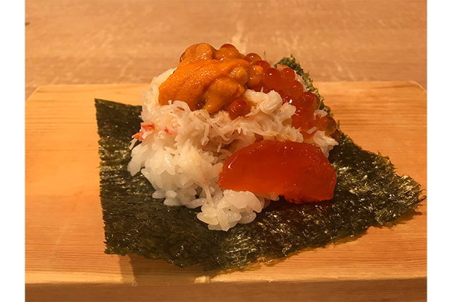| ズワイガニとウニいくらBOOST盛り (卵黄の醬油漬け入り) |