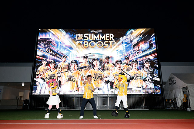 新たな夏のエンターテインメントイベント「鷹祭 SUMMER BOOST」。街中での特別ユニホーム着用や商業施設でのホークス選手のフォトスポット登場などドームを飛び出し街中にも展開していくイベントの幕開けとして、ららぽーと福岡にて「鷹祭 SUMMER BOOST プレーボールセレモニー」を開催しました。その様子をレポートします。