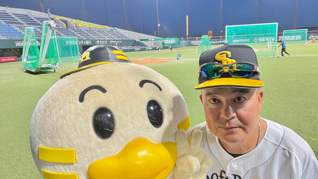 タマスタ筑後での3軍交流戦開催日に限り、チケット窓口で「おじ鷹デー特製タオル(3軍首脳陣Ver.)」付チケットを販売いたします!※数量限定