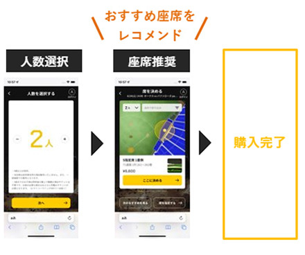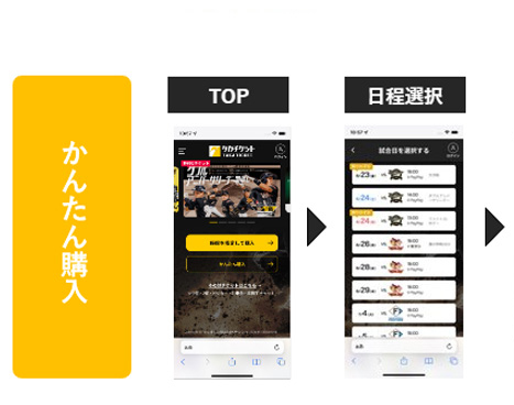 ホークス戦のチケットがより購入しやすいよう「かんたん購入」機能を追加、4ステップでホークス戦のチケットが購入できるようになります。引き続き「タカチケット」のご利用をお願いいたします。