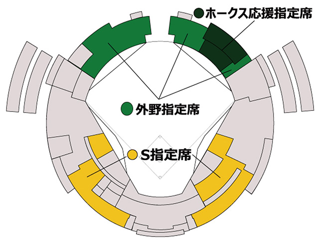 | 試合日 | 外野指定席 (1塁側・ 3塁側) ホークス 応援指定席 (1塁側) |