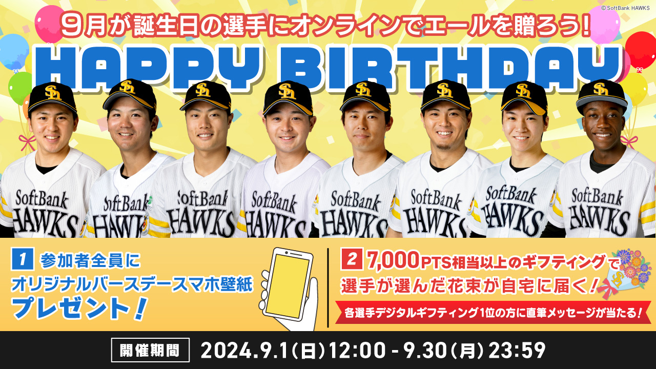 9月1日(日)~30日(月)の期間、9月生まれの選手へエールを送るギフティングイベントを開催します。