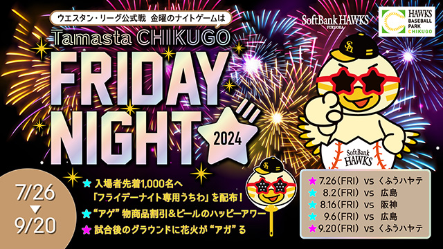 ウエスタン・リーグ公式戦開催日、金曜日のナイトゲームは「タマスタ筑後 フライデーナイト」☆♪
