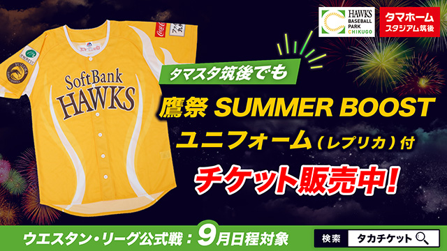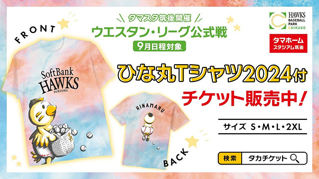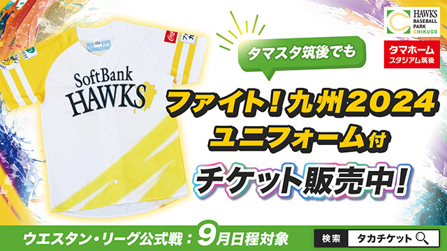 9月にタマスタ筑後で開催するウエスタン・リーグ公式戦チケットとTシャツやユニフォームなどのグッズがセットになったお得なチケットを販売中です!