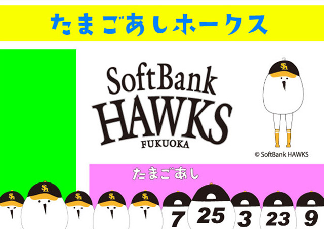 オフィシャルスポンサーであるアドヴェンチャーグループの人気キャラクター「たまごあし」の第2弾ホークスオリジナルグッズが新登場!