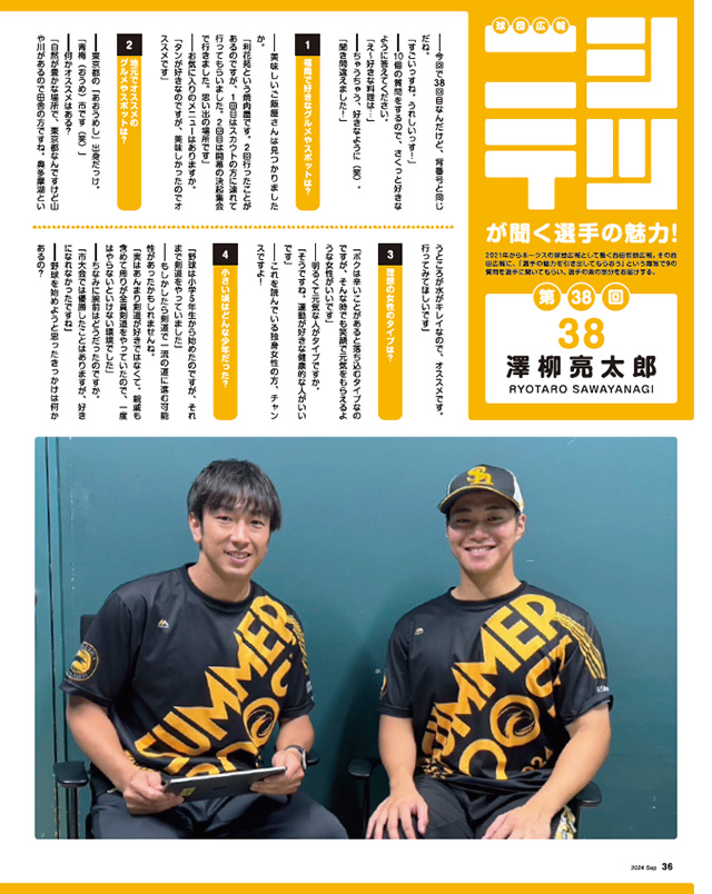 大人気コーナー「ニシテツ広報が聞く選手の魅力」には、澤柳亮太郎投手が登場。西田広報と澤柳投手だからこそ語れる、プライベートトーク満載の内容となっています。