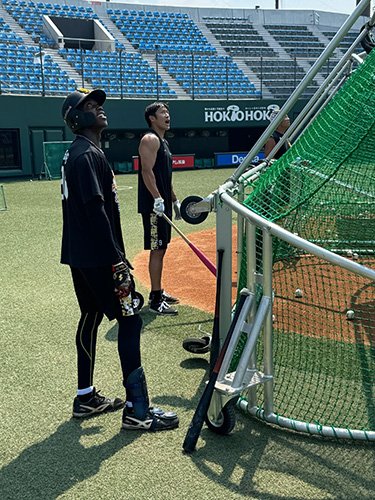 荒金久雄コーディネーター(野手統括)からは「二人とも課題はハッキリしてきています。視点は違えど、打撃練習が必要だと判断しました。イヒネにはフォーム固めから強いスイングを作る、佐倉にはバットを振るスタミナ作りからスイングの軌道作りまでを図る目的です。」こうした考えのもと、二人は毎日3時間近く打撃練習をしています。