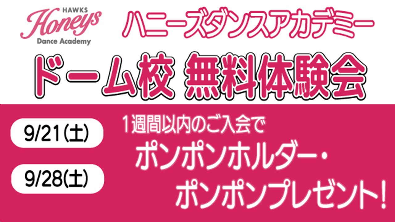 ハニーズダンスアカデミー「ドーム校」では9月21日(土)、9月28日(土)に無料体験会を実施します!