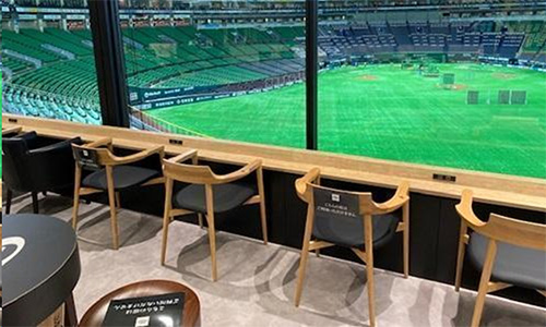 窓際のお席です。球場の様子をガラス越しに見渡せます。